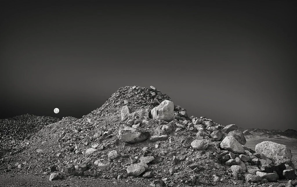 My photographs capture these landforms, devoid of vegetation, architecture or any overt forms of human life, ambiguous in their identities, locations, weather conditions and scale. In addition to the structures of the mounds themselves, traces of human presence remain evident in occasional white trails in the sky. These simple landscapes are enthralling yet foreboding to me, as they simultaneously represent fond memories as well as ongoing manmade intrusions into natural habitats.